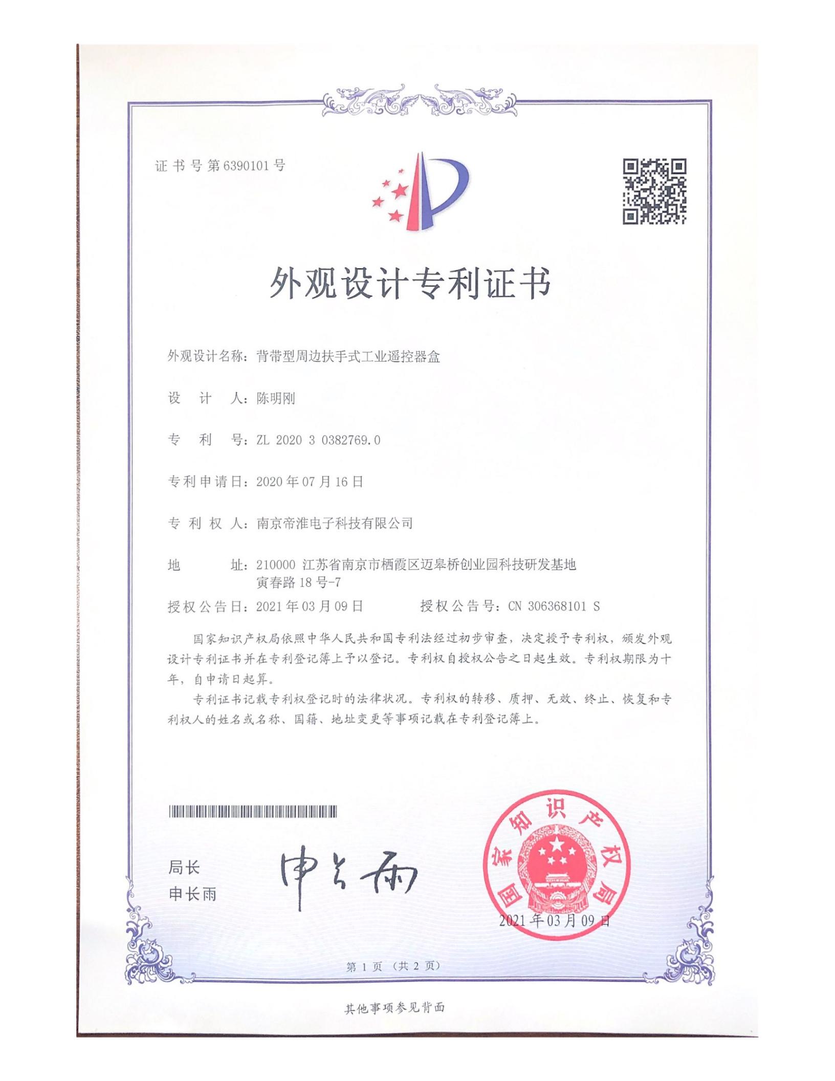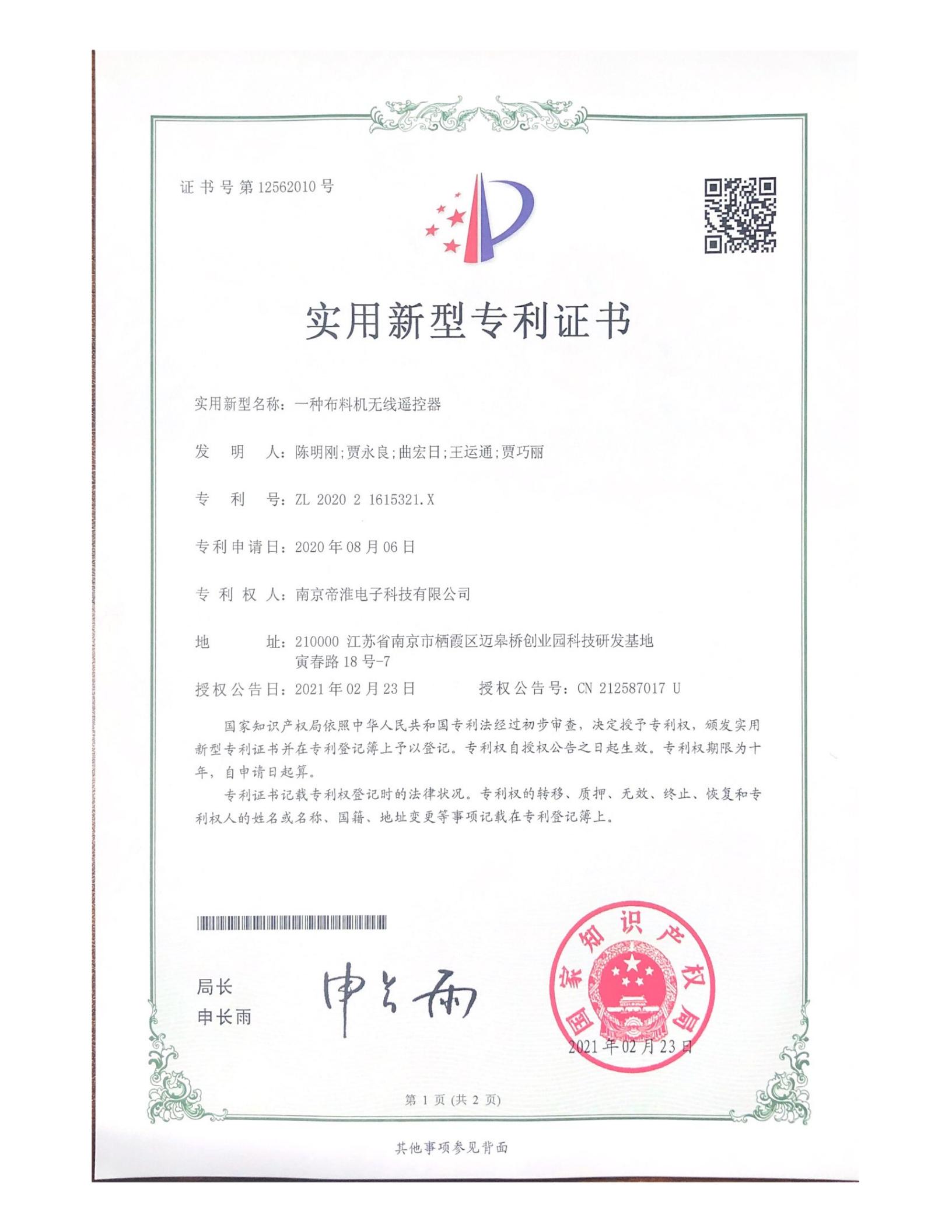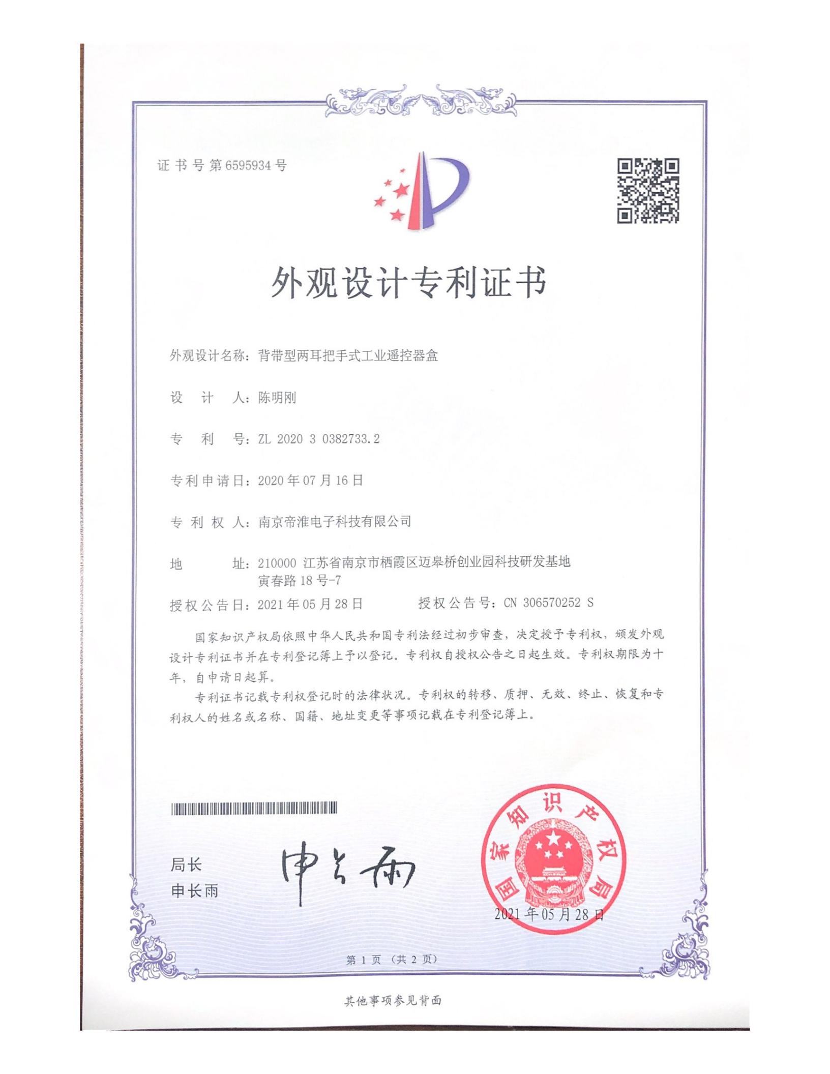 南京帝淮电子科技有限公司,国内工业??仄餍幸盗炀笠担灾餮蟹?、定制、非标设计各类工业级无线遥控器、工业级有线控制器、智能化自主算法逻辑的本地控制器等系列产品。已经申请及正在申请的技术专利、外观专利有近三十项左右,并通过了CE欧盟认证、国家级试验检验报告、EMC电磁兼容认证等。