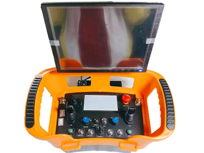 • 3个双轴摇杆+8个按键+1个两档旋转开关+1个5档旋转开关7寸触摸屏平板型工业无线??仄?/div>